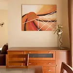 The apartment offers an adjoining terrace, a living room, and a fully equipped kitchen, as well as comforts like air conditioning. The property features a bathroom with hairdryers. Furthermore, a bidet is available.